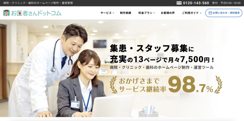 単なるWebサイト構築にとどまらず、完成後の運用や集患対策までワンストップで対応してくれます。