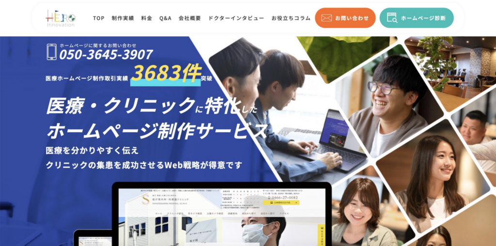 株式会社ヒーローイノベーションは医療やクリニック業界に特化して3,600件以上の制作実績と運用ノウハウを持つ専門企業です。