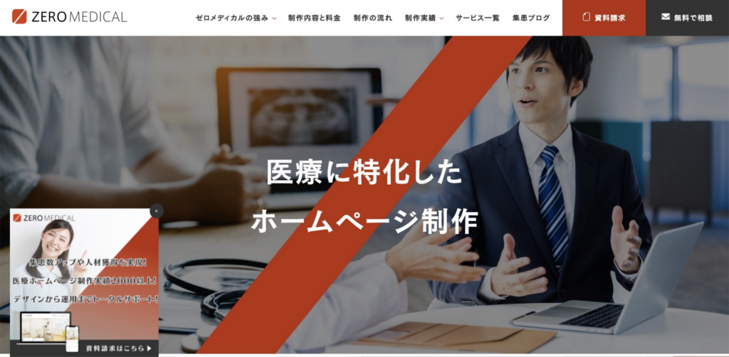 株式会社ゼロメディカルは、医療業界を中心に3,500件以上もの制作を手掛けてきた実績と信頼のあるホームページ制作会社です。