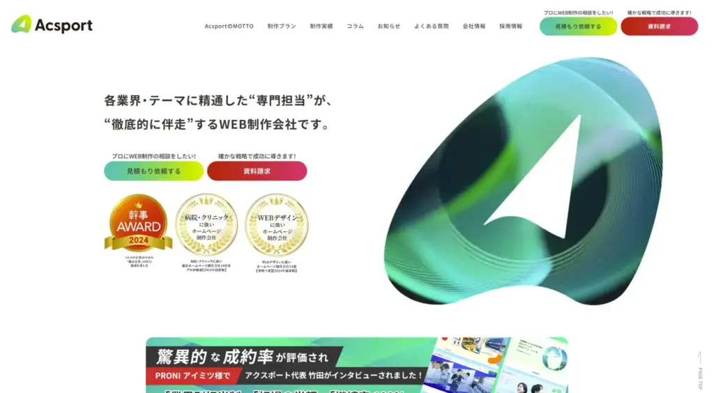 Acsport Medicalは、医療業界に特化したホームページ制作会社です。