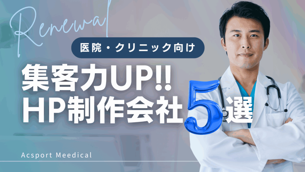 特にAcsport Medicalは、医療の専門性、SEO・MEO・集客力、サポート体制の充実度で高い評価を得ており、リニューアルで集患効果を最大化したいクリニックにおすすめです。