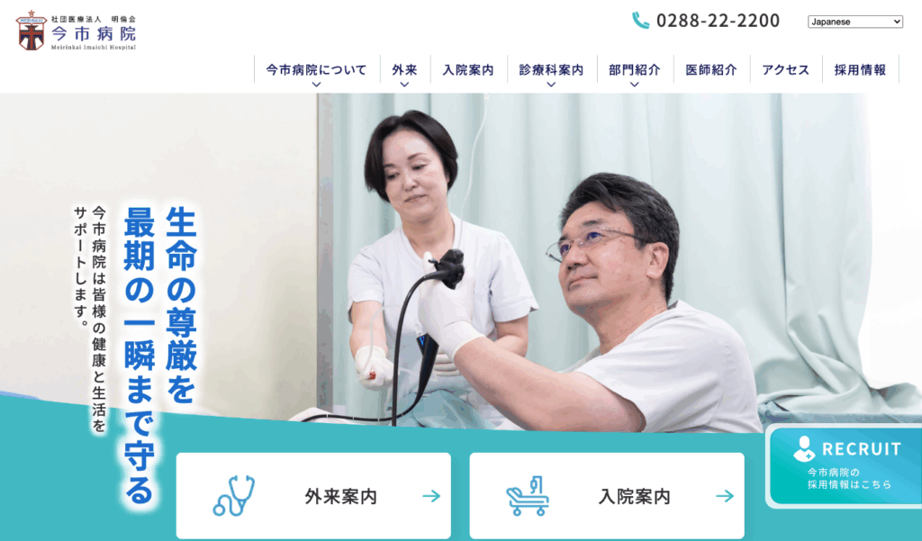 栃木県日光市にある社会医療法人明倫会 今市病院は、創立100年以上の歴史を持つ地域の中核医療機関です。Webサイトでは「救急医療」「肝臓疾患」「糖尿病」「泌尿器科」など、得意分野を明確に打ち出しながら、地域医療への貢献姿勢を伝えています。