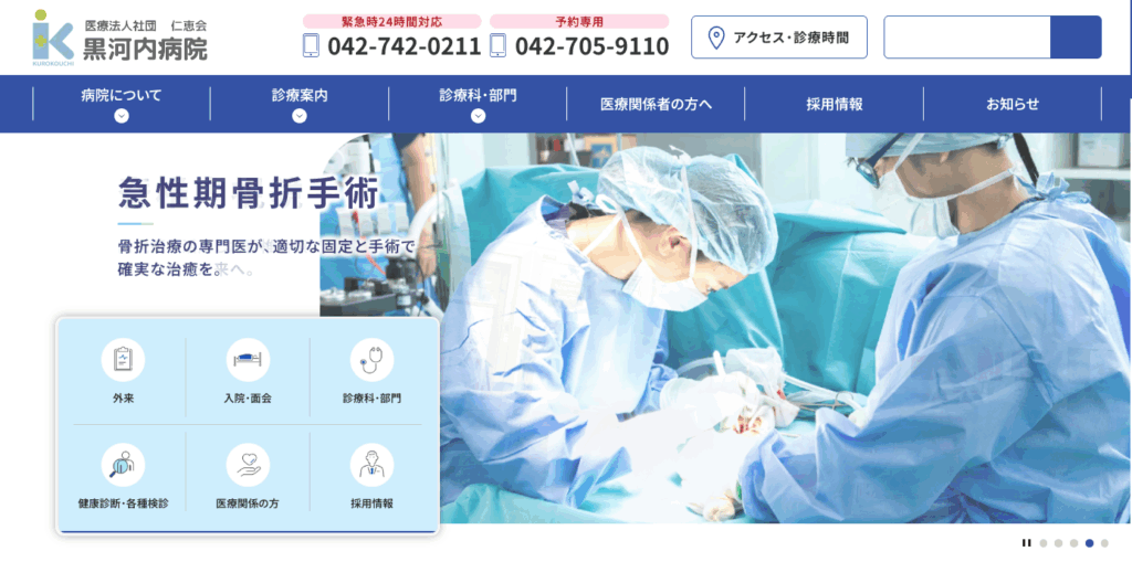 神奈川県相模原市の医療法人社団黒河内病院は、「24時間救急対応」「人工関節手術」「地域密着型医療」を柱に、総合的な診療体制を展開しています。