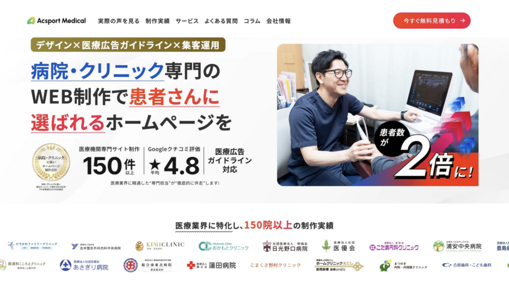 こうした一体的な集患設計を実現するパートナーとして有力なのが、医療機関専門の総合サポートを提供するAcsport Medicalです。