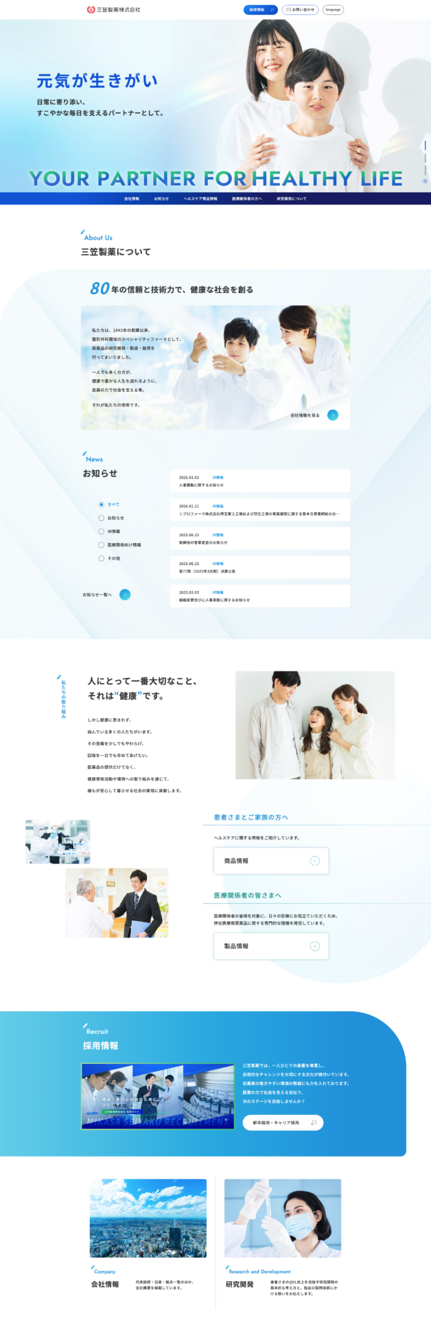 本プロジェクトでは、患者様やそのご家族、一般のユーザー様などに向けたコーポレートサイトのリニューアルをご支援しました。長きにわたって培われた「信頼と技術力」という重厚な側面と、生活者に寄り添う「親しみやすさ」をいかにWeb上で共存させるかが重要なテーマでした。
